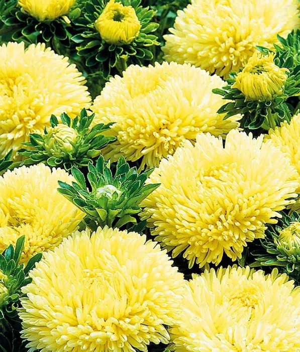 Астра «Желтая башня» — высокорослая многолетняя культура с яркими пионовидными соцветиями тёплого жёлтого цвета. Кусты достигают до 70 см, листья насыщенно-зелёные, побеги крепкие и устойчивые к ветру. Соцветия 8–12 см в диаметре. На растении раскрывается 9–12 цветов; цветение длится с августа до конца октября. Мягкий приятный запах делает эту астру эффектным осенним акцентом на клумбе и в палисаднике.