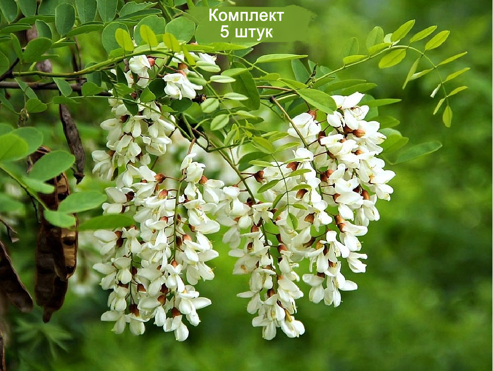 Предлагаем вашему вниманию набор из пяти саженцев акации Белой (Robinia pseudoacacia), идеально подходящих для озеленения садов, парков и приусадебных участков. Акация Белая славится своей неприхотливостью, быстрым ростом и красивыми, ароматными цветами, которые привлекают пчел и других опылителей.