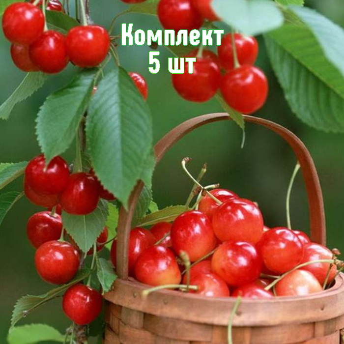 Комплект из 5 саженцев черешни сорта «Голубушка» — выгодное предложение для закладки плодового сада. Акция: пять растений по цене четырёх — экономия при покупке без потери качества.