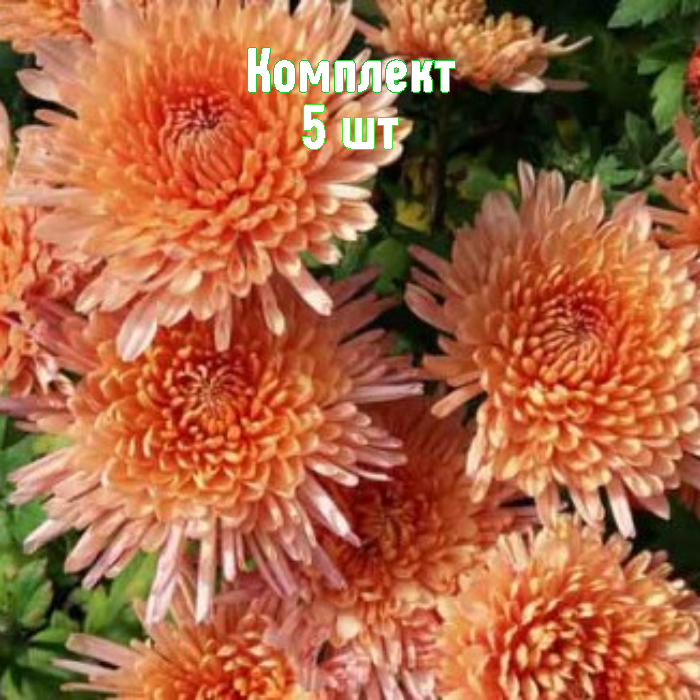 Набор из 5 саженцев хризантемы сорта «Белочка» — выгодное предложение: 5 растений по цене четырёх. Это морозостойкий многолетник с аккуратным овально-шаровидным кустом высотой 40–60 см и крупными махровыми игольчатыми соцветиями до 12 см нежно-абрикосового цвета. Цветение начинается в начале сентября и длится несколько недель на каждом цветке.