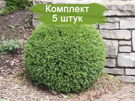 В набор входит 5 саженцев самшита вечнозелёного Маргината, готовых к посадке.