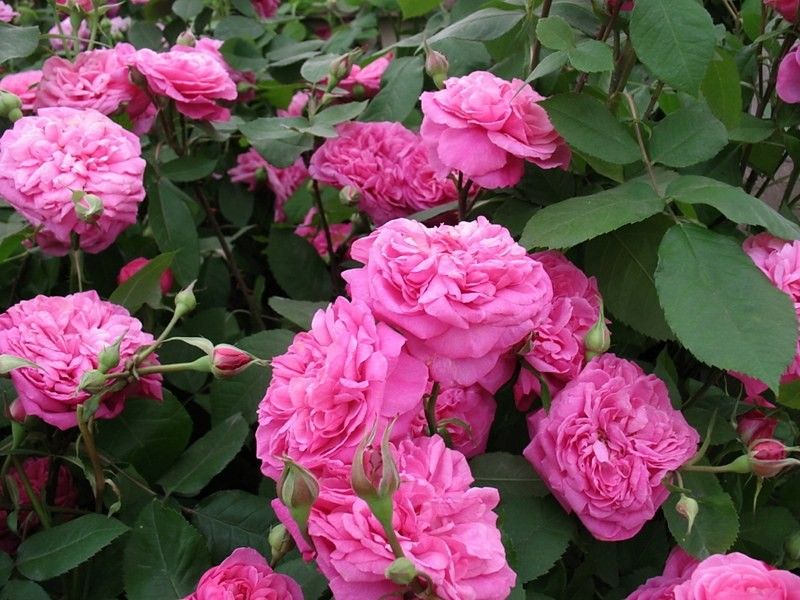- Цветы: Великолепные, густомахровые цветы насыщенного розового цвета, которые раскрываются в виде чашевидных бутонов и источают насыщенный, классический аромат старинных роз.
